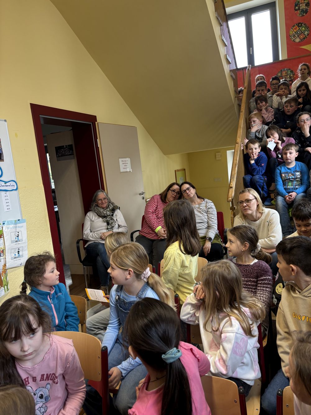 Anschließend berichtete die zweite Klasse von ihrem Wandertag im Silzer Wanderpark sowie von ihrem gemütlichen Kinoabend in der Schule. Die Kinder erzählten begeistert von ihren Erlebnissen und zeigten, wie viel Freude sie gemeinsam hatten.